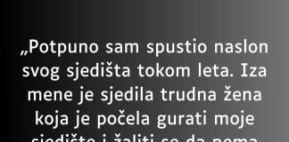 „Potpuno sam spustio naslon svog sjedišta tokom leta…Iza mene je sjedila...