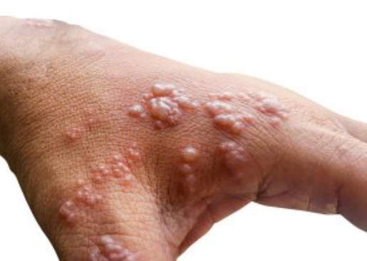 Najčešći znaci su svrbež, peckanje, crvenilo, a zatim i pojava sitnih mjehurića ispunjenih tečnošću. Oni mogu pucati i pretvarati se u bolne ranice koje izazivaju nelagodu, ali i estetski problem. Kod nekih osoba simptomi su blagi i kratkotrajni, dok kod drugih mogu biti izraženiji i dugotrajniji. Uz lokalne promjene, često se javljaju i opšti simptomi poput blage povišene temperature, glavobolje i osjećaja slabosti.